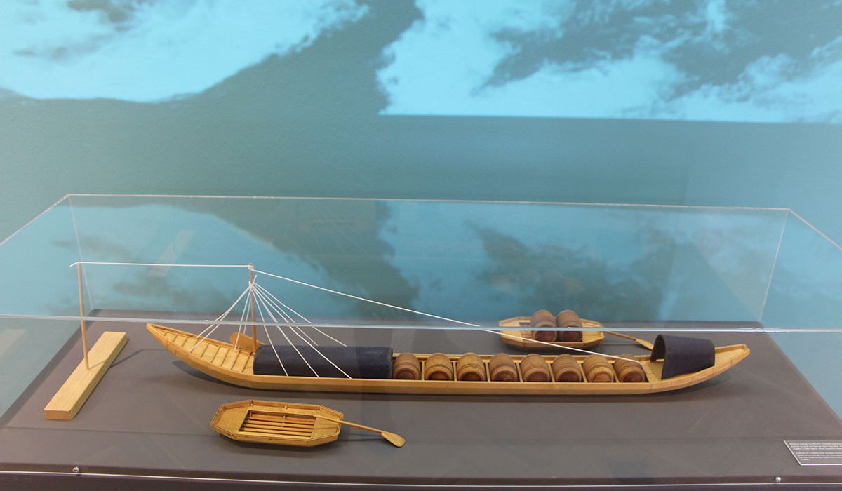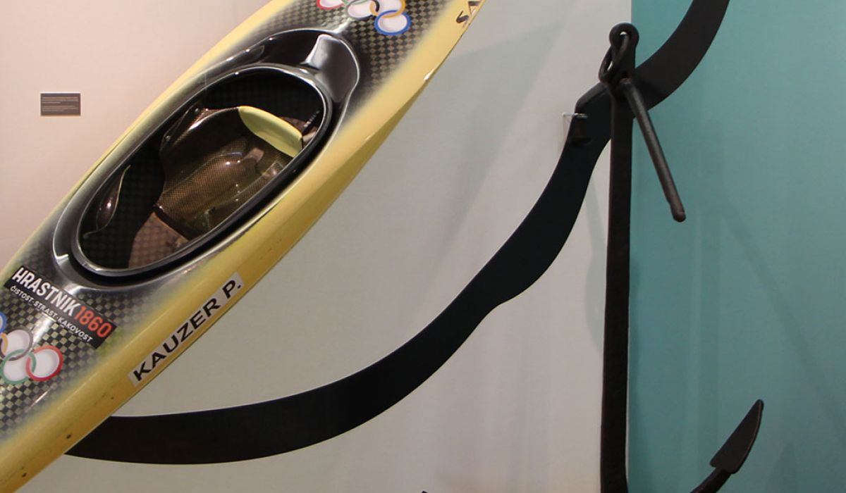 Panoje s teksti in fotografijami dopolnjujejo razstavni eksponati. Na gostovanje v Brežice smo 'poslali' sidro Admiral, najdeno v Savi pri Hrastniku. Peter Kauzer, svetovni prvak v kajaku na divjih vodah, nam je posodil svoj zmagoviti olimpijski čoln. Dodali smo še repliko tombasa, ki je ena od večjih privlačnosti naše stalne razstave in tri umetniške slike Savske soteske – večne inspiracije umetnikov.
