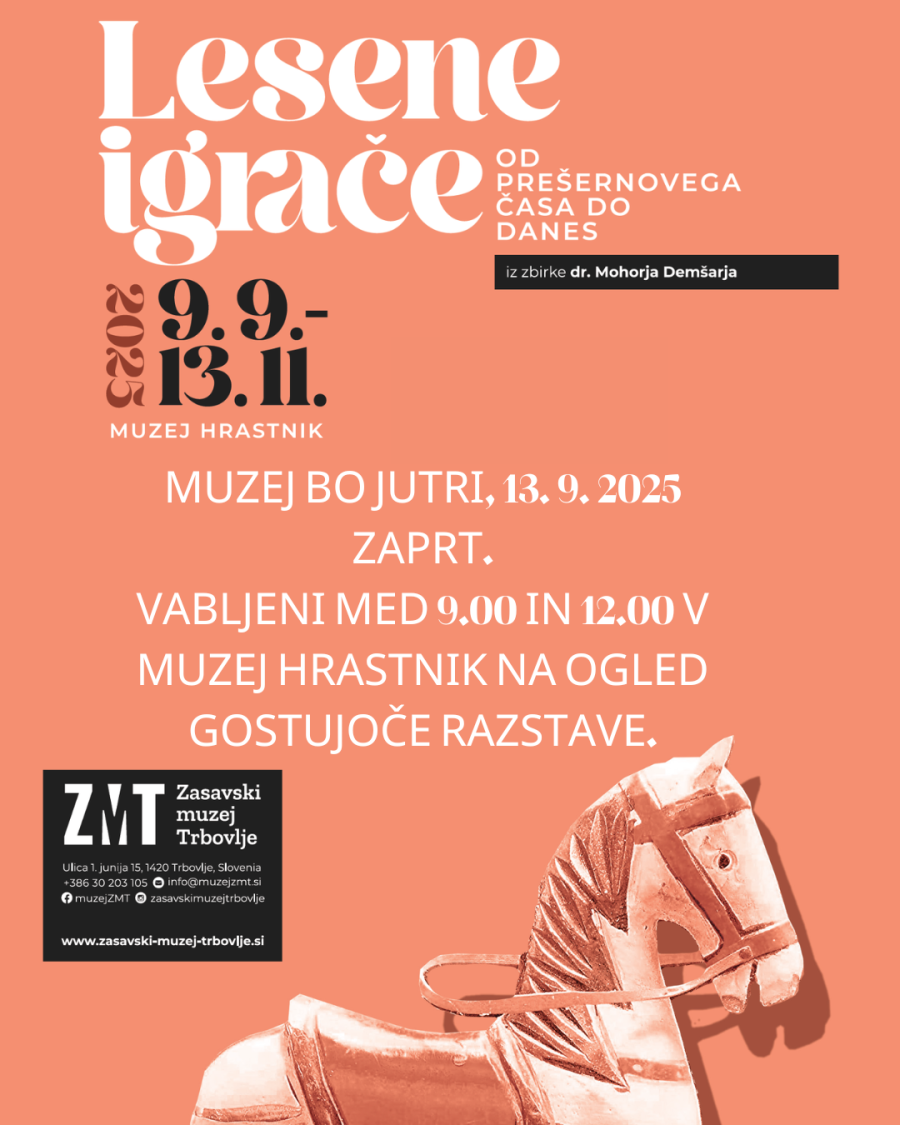 - otvoritev gostujoče razstave v Muzeju Hrastnik - torek, 9. 9. 2025, ob 18:00
