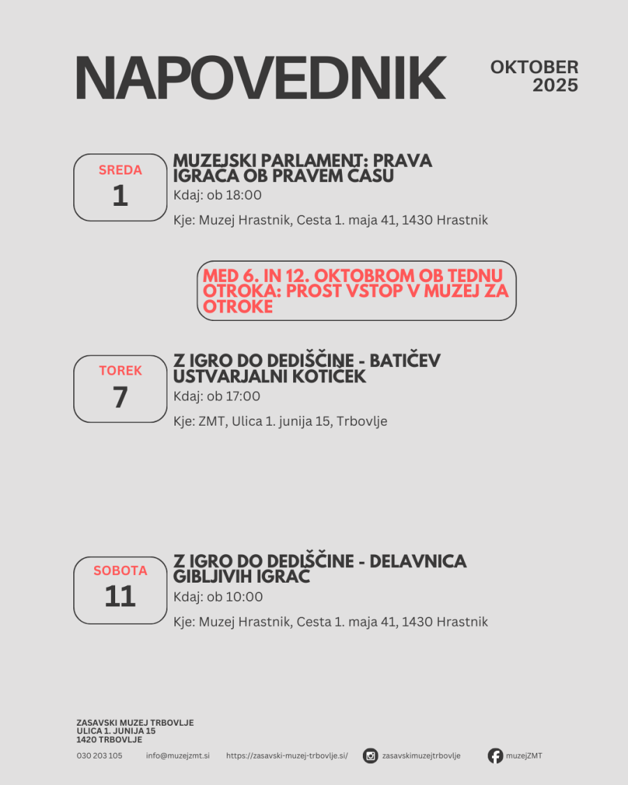 - srečanje muzejskega parlamenta (spremljevalni program gostujoče razstave) v Muzeju Hrastnik - sreda, 1. 10. 2025,...
