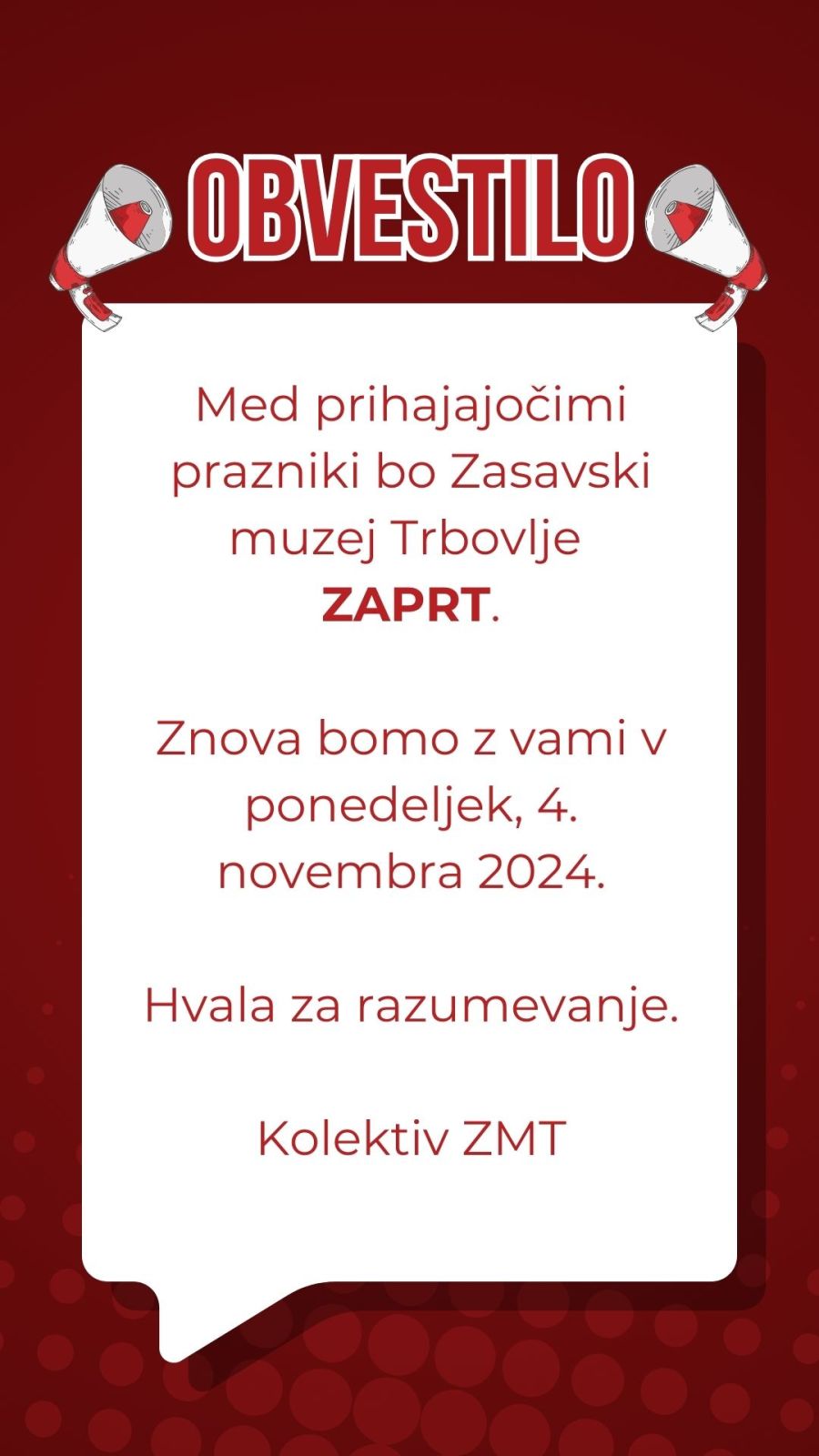 Zaradi sodelovanja na festivalu bo Zasavski muzej Trbovlje v soboto, 21. 9. 2024 ZAPRT.